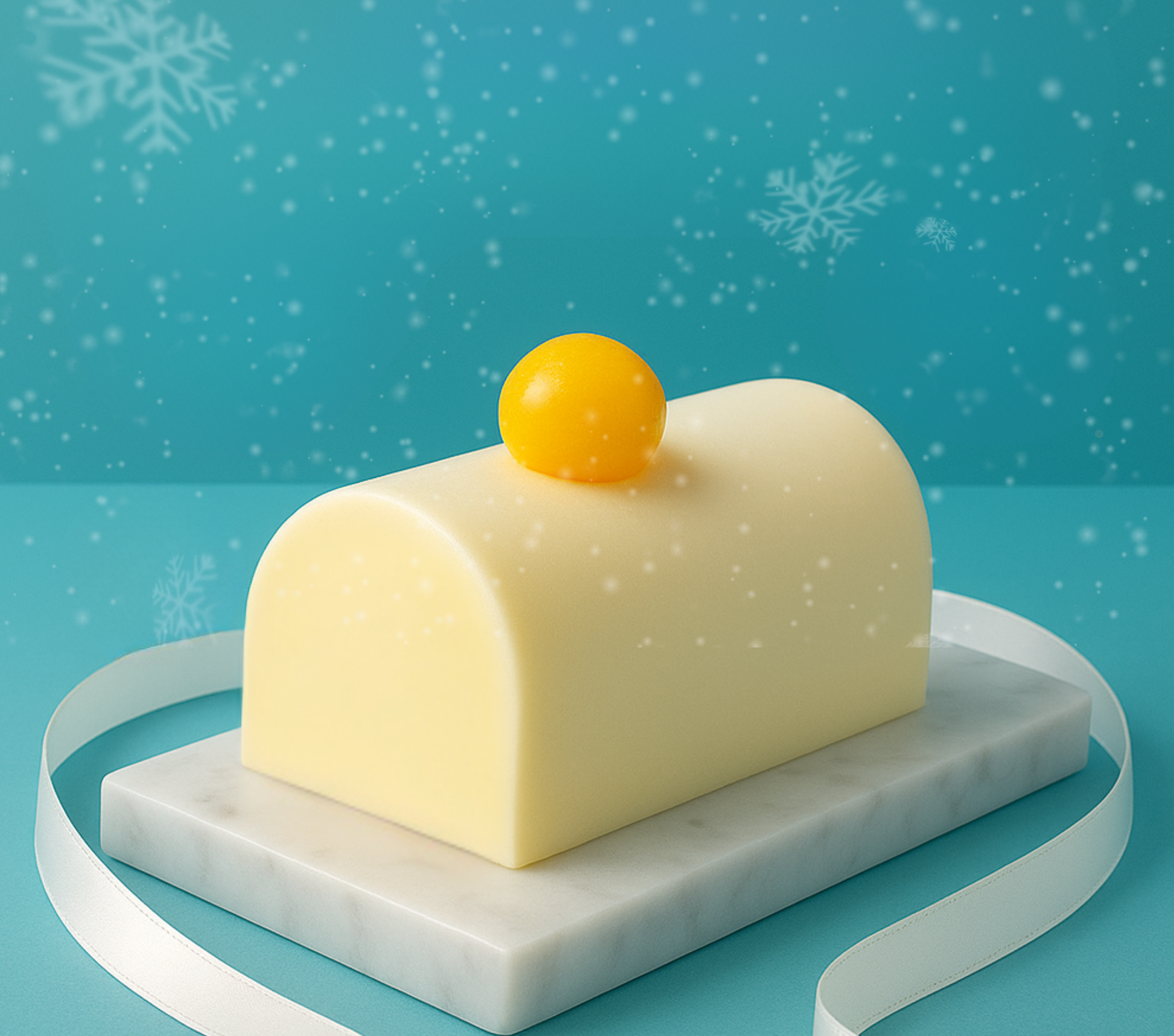 Cette bûche se compose de notre Glace Fior Di latte et de notre sorbet Mangue